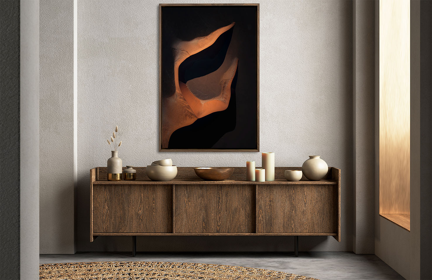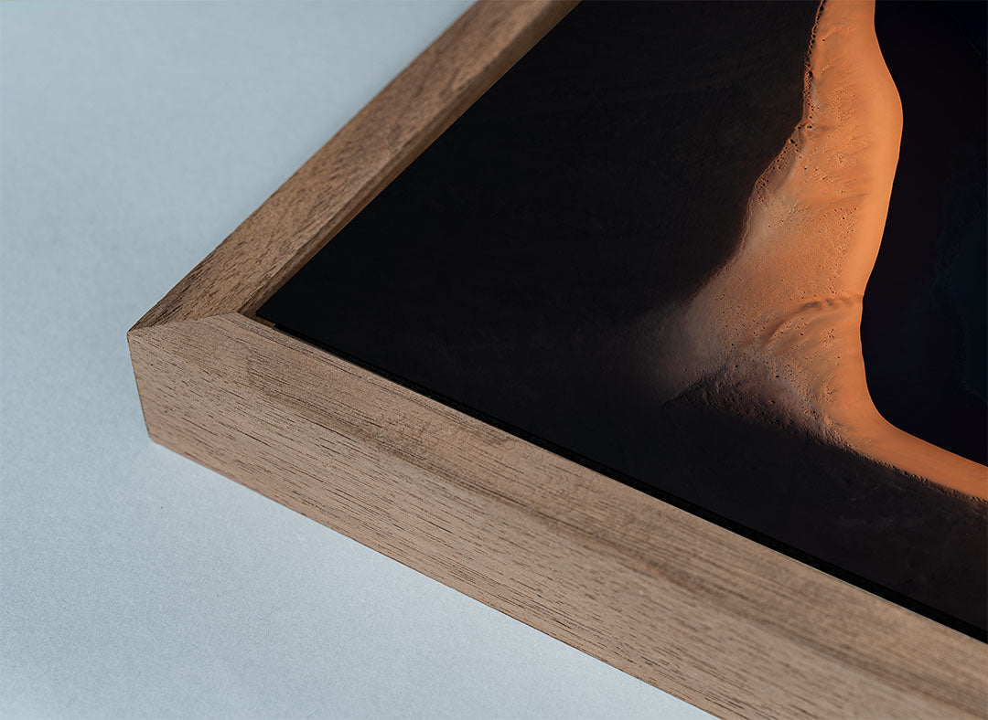 I always aim to select the best matching wood with the colors in the photo, ensuring the artwork truly stands out. The fine art print will be fixed on a 1 mm thick aluminum plate and then mounted in the solid wooden frame.