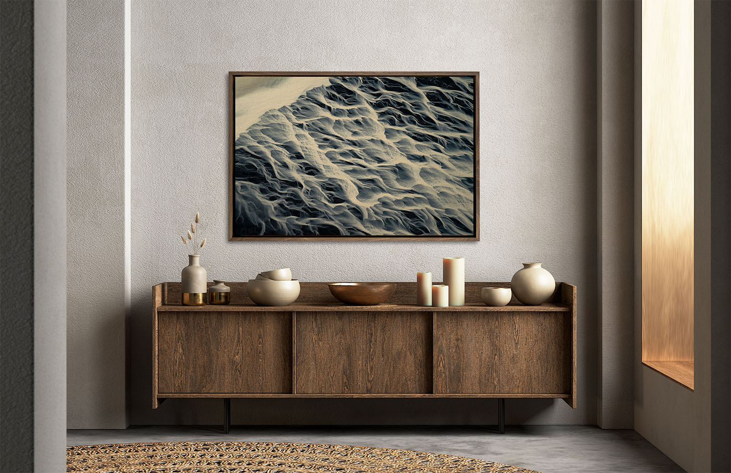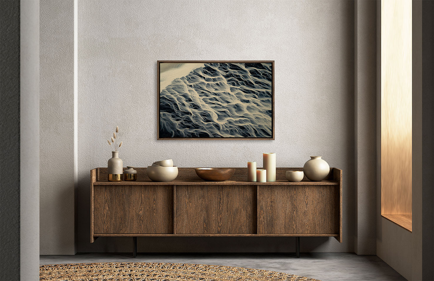 I always aim to select the best matching wood with the colors in the photo, ensuring the artwork truly stands out. The fine art print will be fixed on a 1 mm thick aluminum plate and then mounted in the solid wooden frame.
