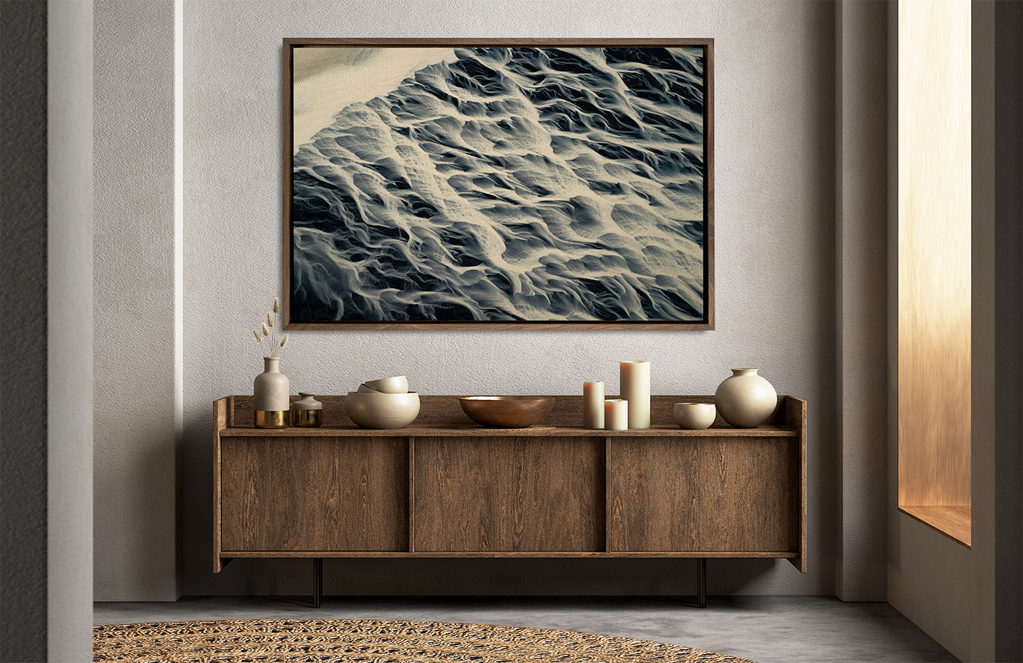 The frame is handmade by a professional framer in The Netherlands. The print will be fixed on a 1 mm thick aluminum plate and then mounted in the wooden frame. To ensure the highest level of protection for the artwork, consider adding museum glass (70%) as a protective layer in front of it.
