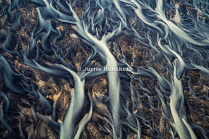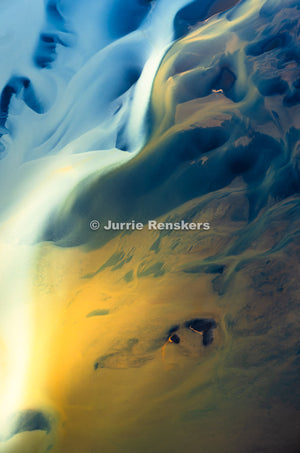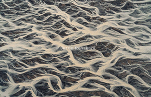 The landscape reveals itself as a living artwork. A shifting canvas shaped by ice, water and time. What appears chaotic from the ground, suddenly becomes calm and composed. Almost like painting. Lines branch out like arteries, colours blend like ink and textures form patterns that seem too precise to be natural.